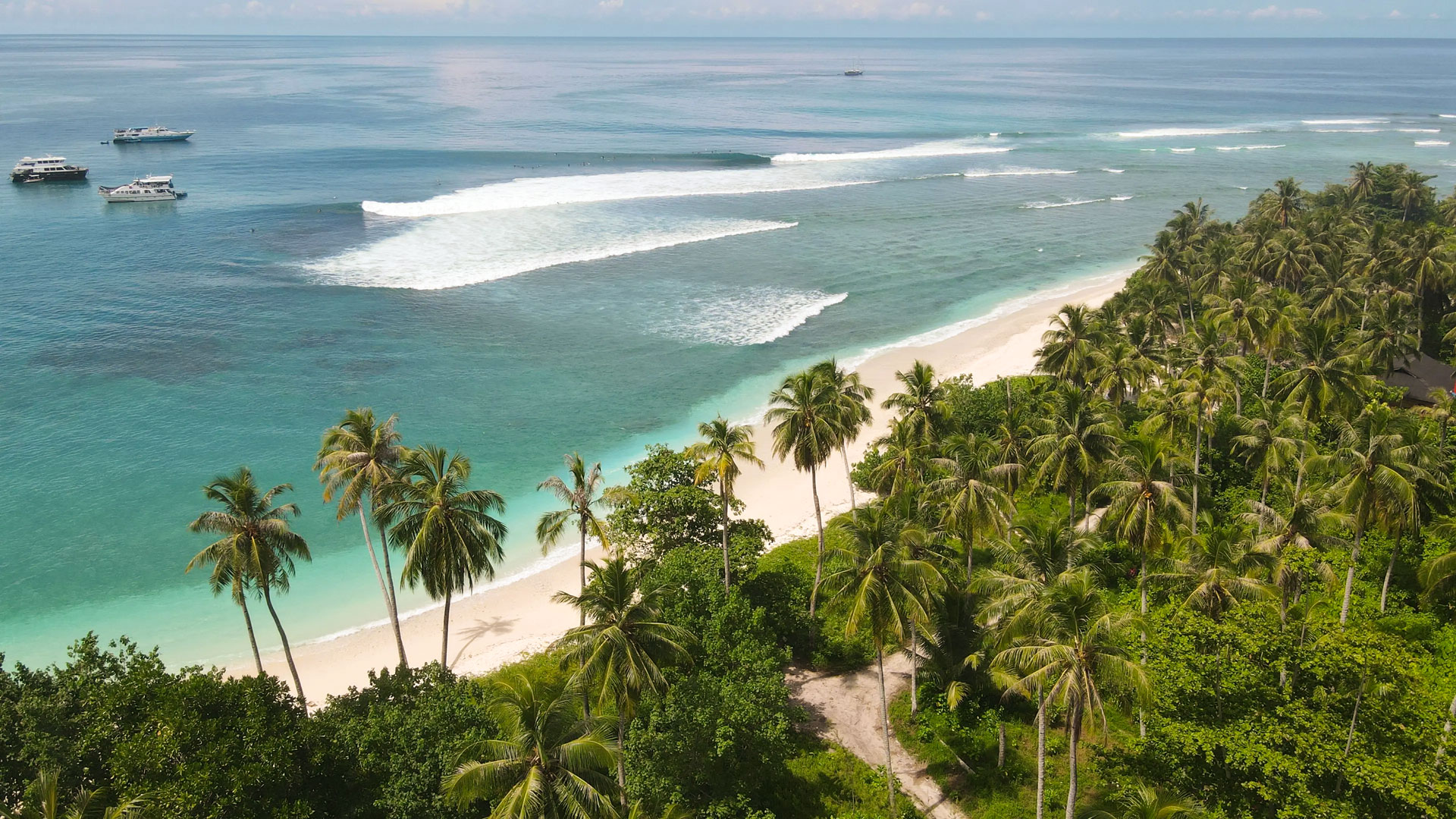 Moon Palikir stands out as a big-boat charter option in the Mentawai Islands; built to high specification, it gives you ample space, air-conditioning, modern amenities and a two-tender set-up that maximises surf time. With a length overall of about 35 m and width of 6.5 m, the vessel carries twin 420 HP Nissan RF10 engines and cruises at around 12 knots.