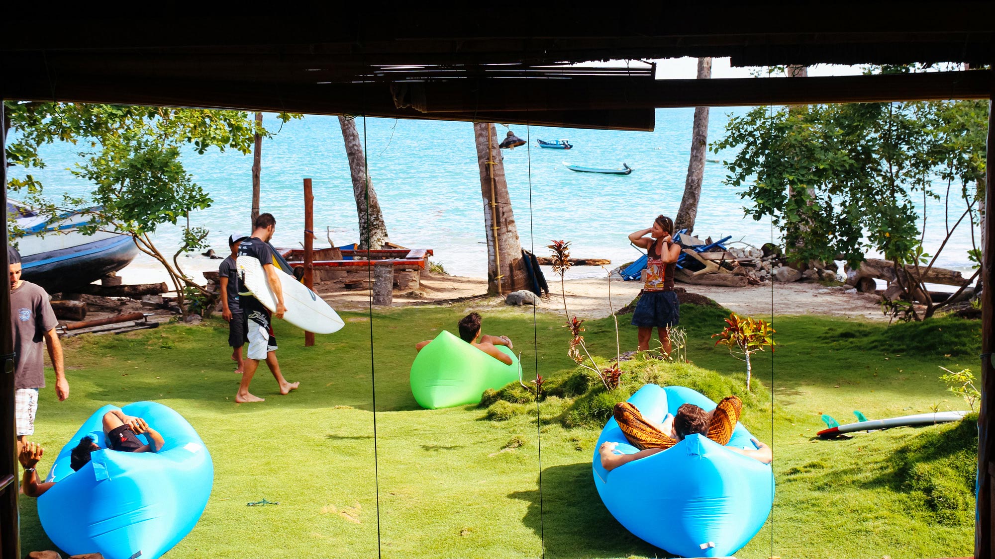 - Type: Locally-owned surf camp on Masokut Island (Nyang Nyang)
